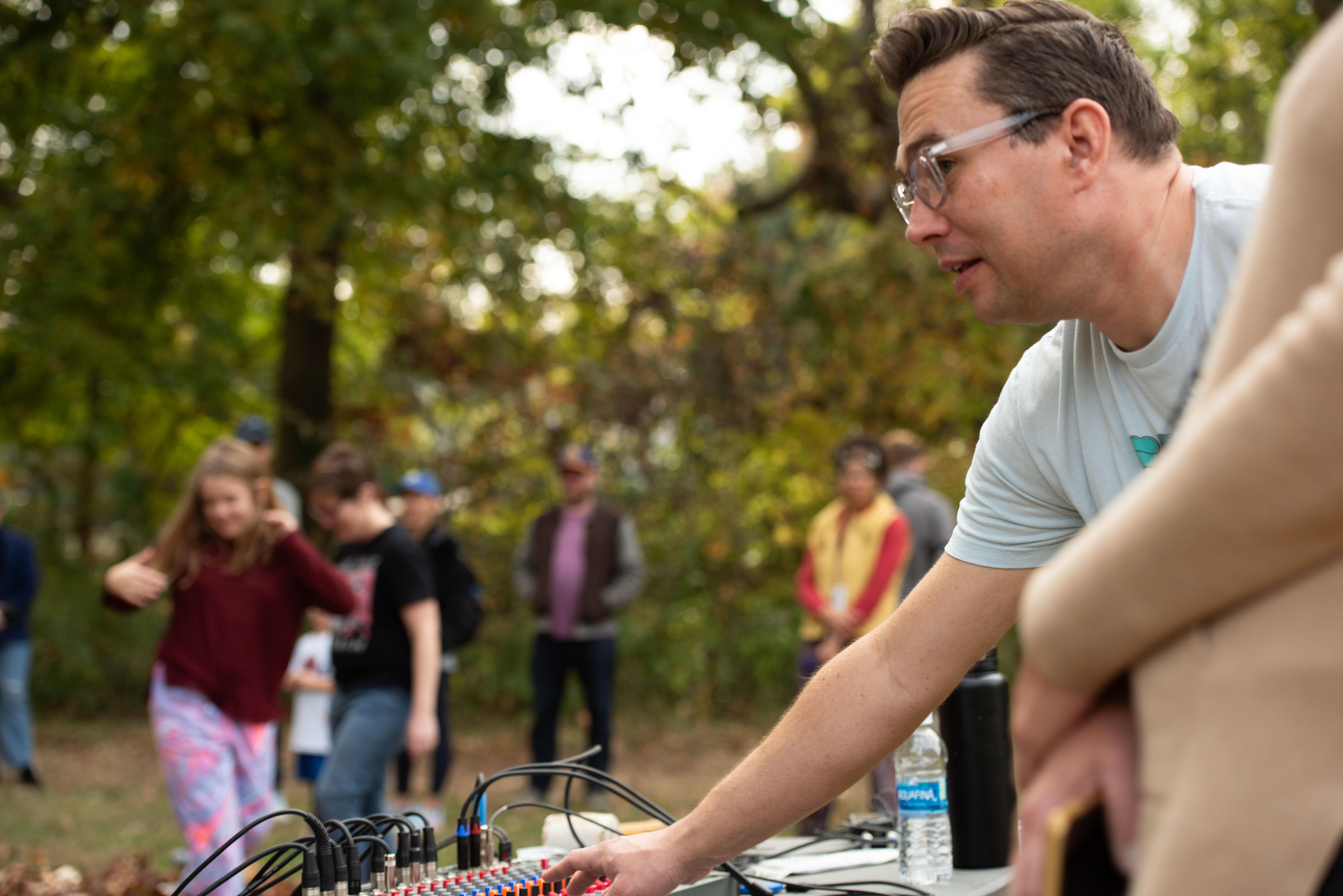 The Sound Leaves is an interactive sound performance and installation based around humans’ impact on the environment and how that impact is altering the sonic landscape of our world. As ecosystems change due to climate change, the sound of those ecosystems changes too. The Sound Leaves uses an amplified collection of autumn leaves to encourage participants to listen closely to how their actions alter the sounds of the fallen leaves by walking on and through them for a period of time. By amplifying these sounds, processing and mixing them live, and playing them back via a set of speakers directed at the installation, the performance will heighten the sonic changes participants’ actions create.