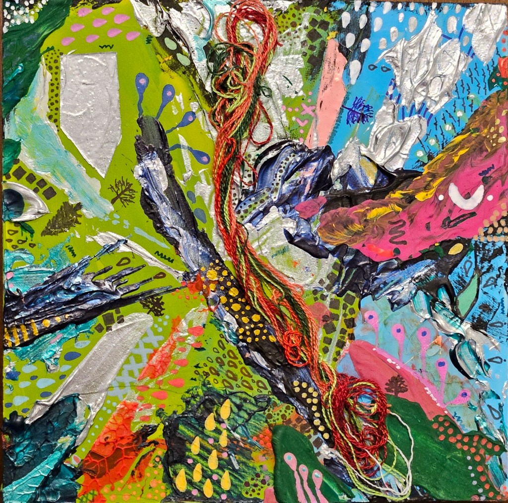 “The Messes We (Don’t Mean To) Leave” #s 1 & 2 – Multimedia collage on reclaimed wood. The unintended consequences of intentional actions.